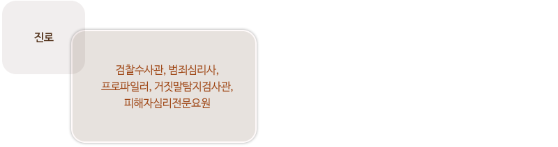 | 2 | 범죄피해자학(Study of Crime Victim) 피해자가 경험하는 정서적·행동적 측면을 다루며, 범죄유형별 피해자의 심리적 특성과 원인을 연구한다. 또한, 범죄자를 교정 및 보호하는 과정에서 범죄피해자를 지원하고 보호하는 절차를 살펴봄으로써 범죄피해자 범죄 및 재범을 예방하고 피해자학의 과제와 전망을 제시하고자 한다. |