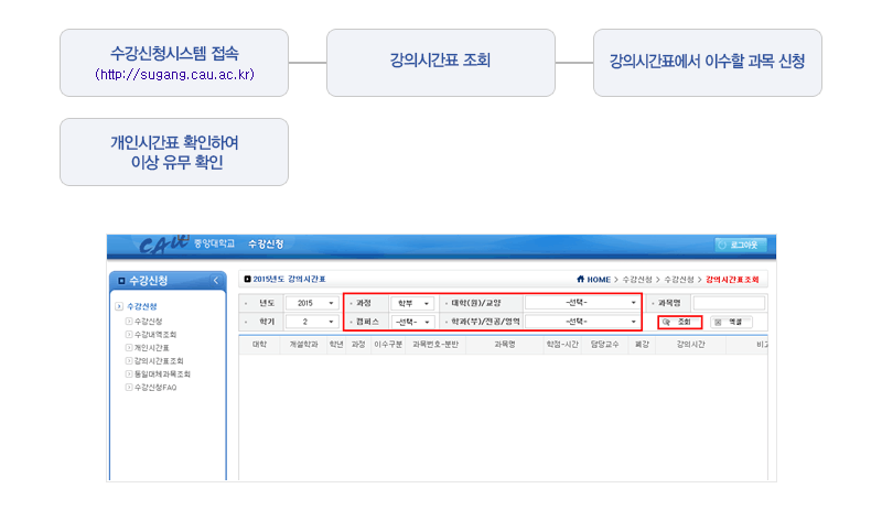 2) 중앙대학교 내 타 대학원 수업 수강 : 학점교환 신청을 통해 가능(재학기간 중 2과목 까지)